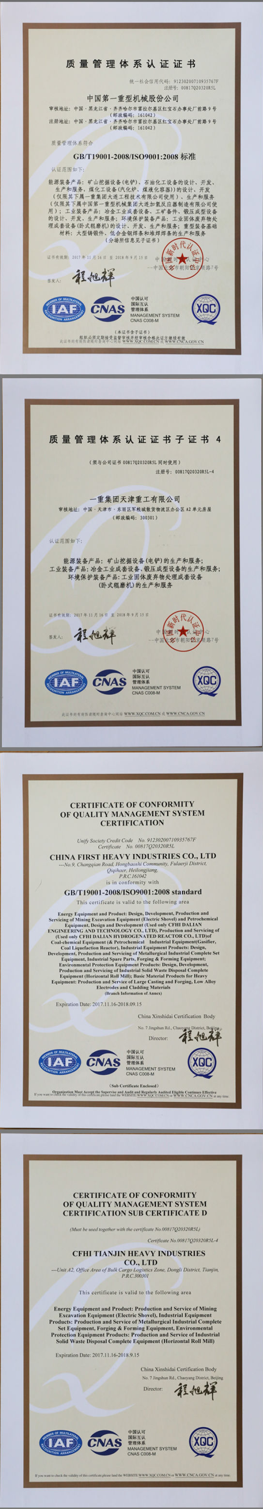 此證書由中國新時代質(zhì)量體系認(rèn)證中心頒發(fā),標(biāo)志著企業(yè)質(zhì)量管理體系符合GB/T19001-2008(idt ISO9001:2008)標(biāo)準(zhǔn)要求