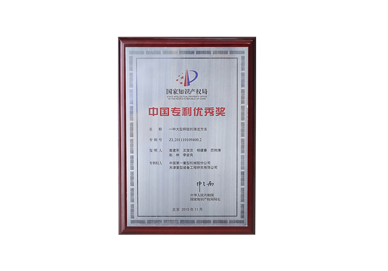 中國專利優(yōu)秀獎(一種大型鋼錠的澆注方法)ZL201110109400.2