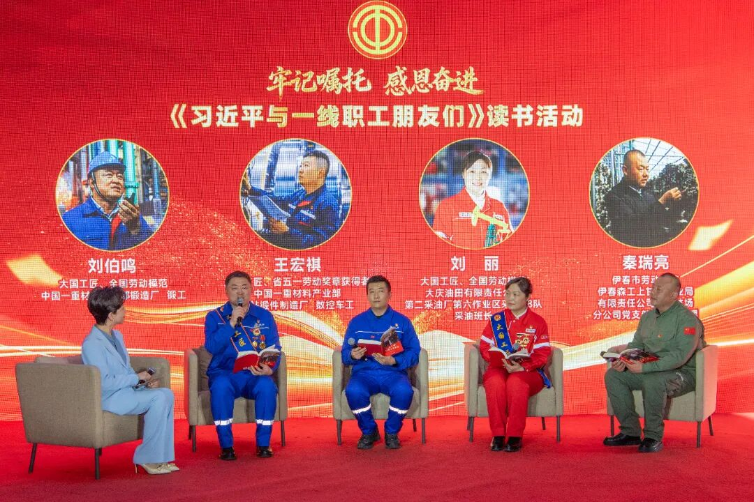 ? ? ? ?活動邀請書中受訪的中國一重勞模工匠代表劉伯鳴、王宏祺和黑龍江省優(yōu)秀職工代表秦瑞亮、劉麗,以“當(dāng)年人講當(dāng)年事”的形式,再現(xiàn)了習(xí)近平總書記心系一線職工、謳歌勞動創(chuàng)造的感人故事,生動展現(xiàn)我省職工牢記囑托、感恩奮進的創(chuàng)新創(chuàng)造。訪談嘉賓帶領(lǐng)現(xiàn)場觀眾共同朗讀書中的深切勉勵和殷切期望,共同感悟思想偉力。鏗鏘有力的聲音,是在場職工奮斗的誓言,更是廣大一重職工前進的號角。